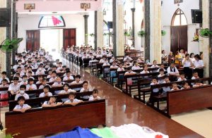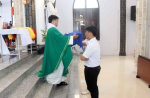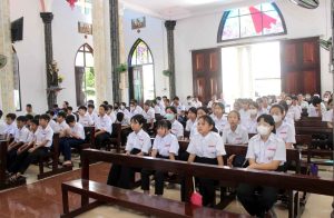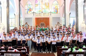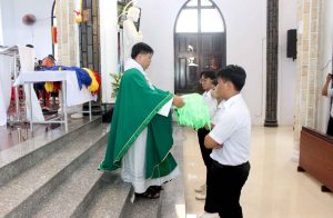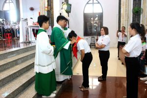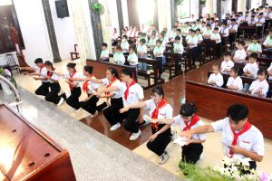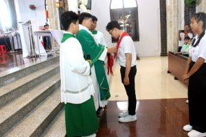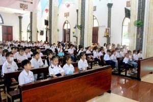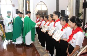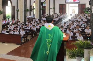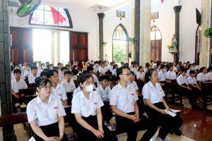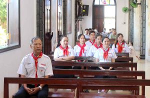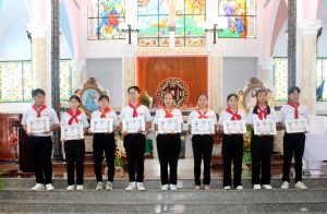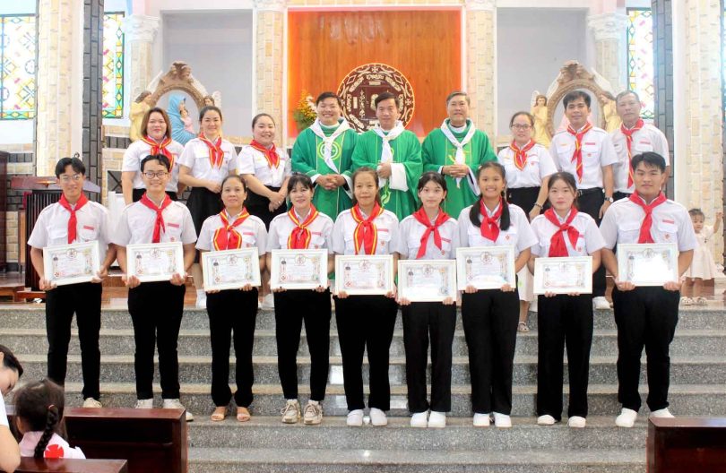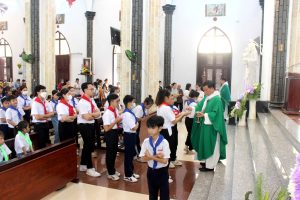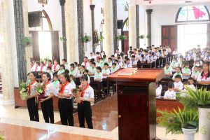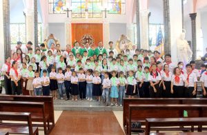 “Trong anh em, người làm lớn hơn cả, phải làm người phục vụ anh em. Ai tôn mình lên, sẽ bị hạ xuống; còn ai hạ mình xuống, sẽ được tôn lên” (Mt 23,11-12). Đó là câu lời Chúa mà cha Philipphê Huỳnh Ngọc Tuấn – Tuyên úy Liên Đoàn Các Thánh Tử Đạo Việt Nam – Giáo phận Mỹ Tho, đã nhắn nhủ đối với các em thiếu nhi trong thánh lễ ra mắt và tuyên hứa Ban Điều Hành Xứ Đoàn Đức Mẹ Mân Côi.