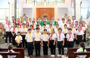 Thánh lễ kết thúc vào lúc 10g30. Quý cha, quý Huynh trưởng cùng chụp hình với với các em đoàn sinh Xứ Đoàn TNTT Đức Mẹ Mân Côi nhân ngày hồng phúc một ngày đánh dấu bước tiến thành lập và phát triển của Xứ Đoàn.