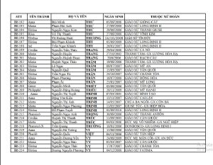 Đối tượng: Các Huynh-Dự trưởng có tên trong danh sách đính kèm