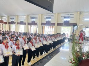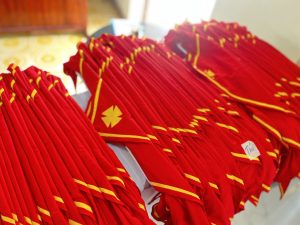 Trong sự trang nghiêm, các bạn Huynh trưởng tuần tự lên nhận Khăn huynh trưởng và cấp hiệu sao của mình. Cùng tiếp đó là trao các chứng chỉ Huynh trưởng cho đại diện các giáo xứ, xứ đoàn.