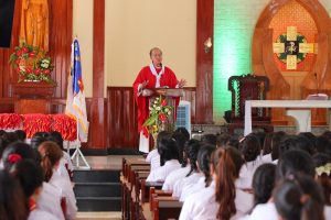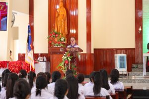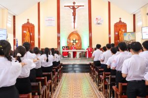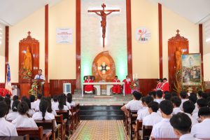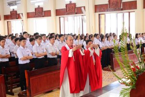 Chia sẻ tiếp với các bạn Huynh trưởng trong bài giảng, Cha Tổng đã nói: “…Đó là những người cha ông chúng con đã can trường hy sinh, đổ máu vì Chúa Kitô… Còn chúng con, chúng con không phải đổ máu như họ, nhưng chúng con vẫn tử đạo được… khi chúng con chấp nhận dấn thân vào Huynh trưởng, chúng con chấp nhận dấn thân vào con đường phục vụ các em thiếu nhi. Trong xứ đạo chúng con sẽ có những vui buồn, đau khổ, đôi khi rướm máu, đôi khi là đẫm lệ… tất cả những điều đó đều góp lên sự hy sinh cao cả của một người huynh trưởng. Đó cũng là một cách chúng con tử đạo… Các Thánh tử đạo đã chết một lần cho Chúa. Còn chúng con – các Huynh trưởng, chúng con hy sinh từng ngày, hy sinh cái nhiệm vụ huynh trưởng, hy sinh phục vụ các em, tử đạo liên lỉ liên lỉ trong đời sống của chúng con. Để chúng con luôn “dấn thân” trong tình yêu Đức Giêsu Kitô…”