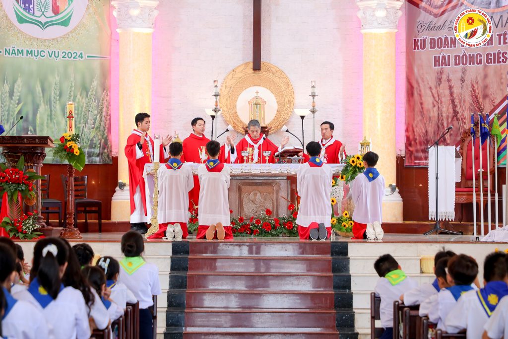 Vào lúc 07h00 sáng Chúa nhật Lễ Chúa Thánh Thần hiện xuống 19/05/2024, tại Thánh đường giáo xứ Cai Lậy, GP. Mỹ Tho đã long trọng diễn ra Thánh lễ ra mắt Xứ đoàn Thiếu Nhi Thánh Thể (TNTT) Têrêsa Hài Đồng Giêsu. Nghi thức ra mắt do cha Tuyên úy Liên đoàn Các Thánh tử Đạo Việt Nam- GP. Mỹ Tho Philipphê Huỳnh Ngọc Tuấn chủ sự.