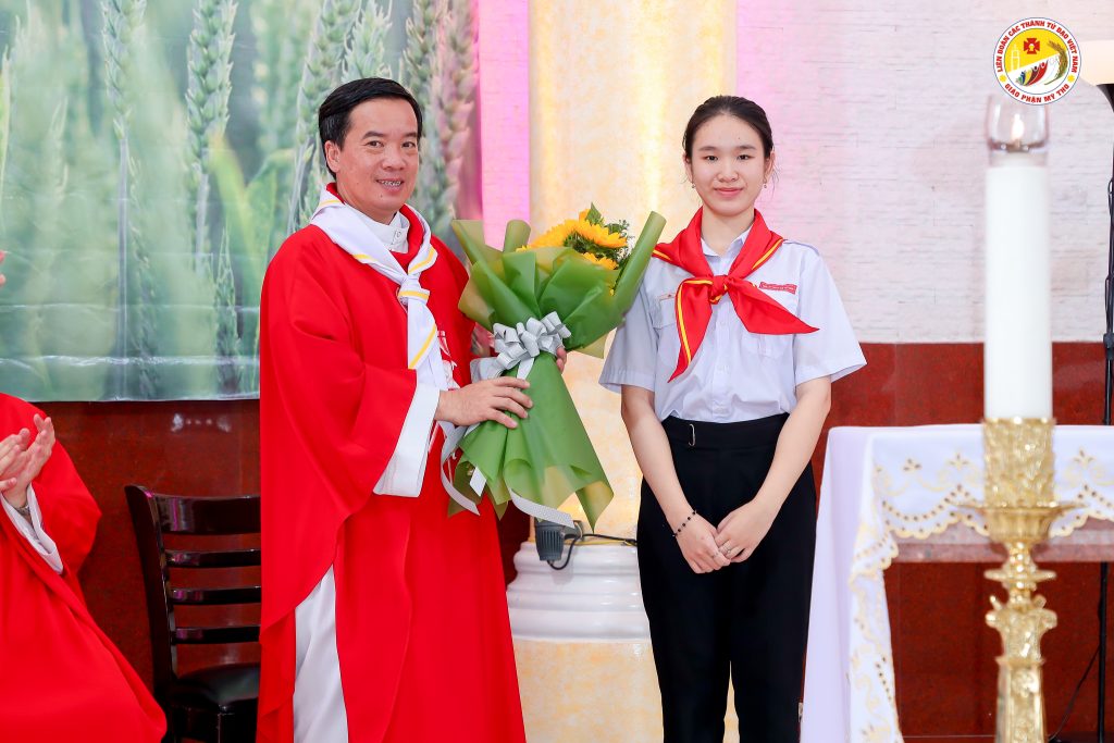 Trước khi kết thúc Thánh lễ, một em Thiếu nhi đại diện cho Xứ đoàn gửi lời cảm ơn đến quý Cha, quý Thầy, Ban Giáo lý, quý HĐMV Giáo xứ, BĐH Liên đoàn và cộng đoàn trong tâm tình hết sức tri ân và biết ơn.
