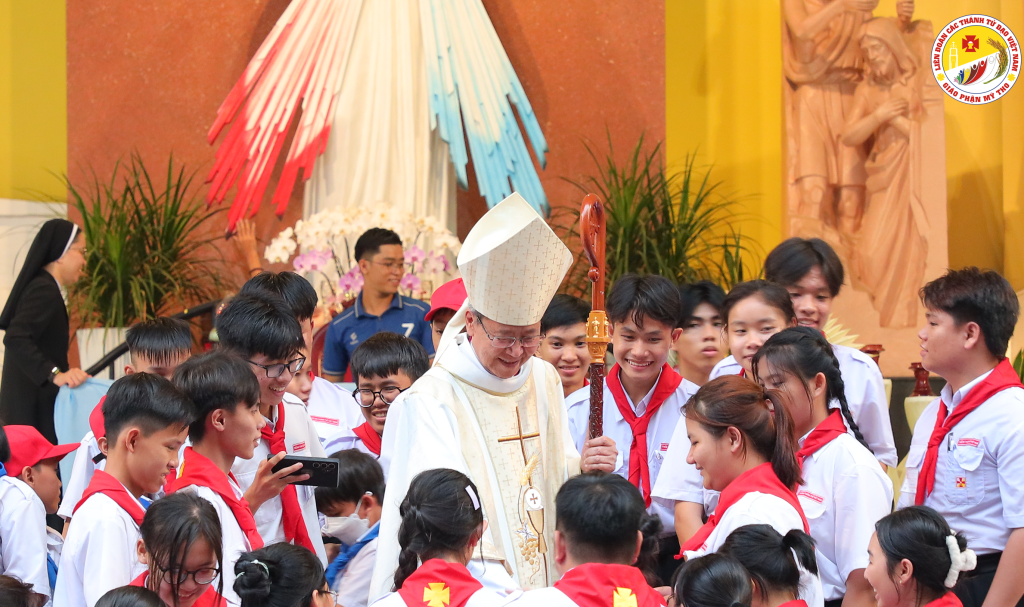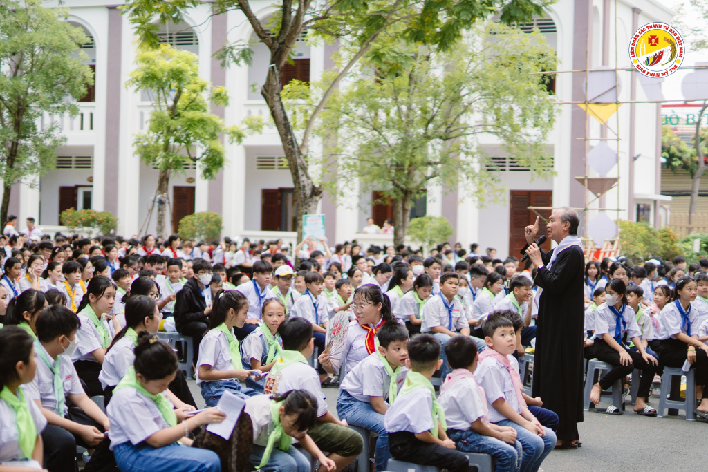 Sau đó, các bạn Giới trẻ – Thiếu Nhi Thánh Thể  tiếp tục lên đường trở về Trung Tâm Mục Vụ. Vào lúc 15g30, gặp gỡ cha Tổng Đại Diện và lắng nghe chia sẻ đề tài “Thiếu Nhi Thánh Thể Tham gia vào Sứ vụ của Hội Thánh”.