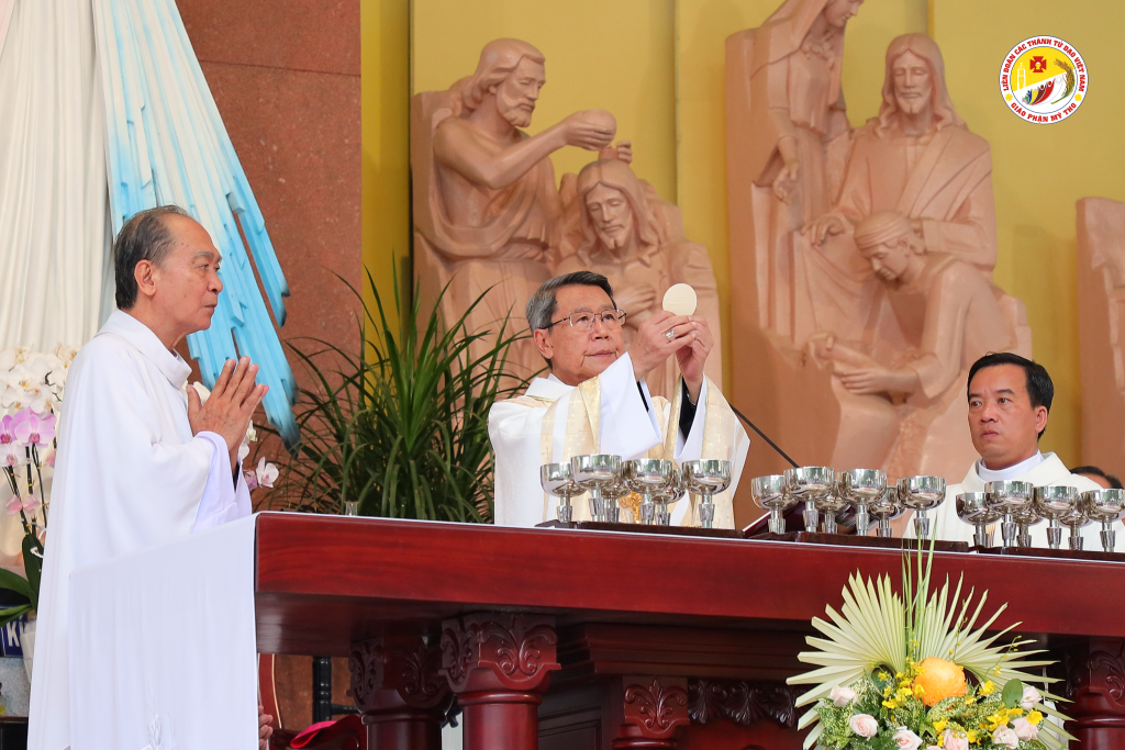 Thánh Lễ bắt đầu vào lúc 17g30do Đức cha Phêrô chủ sự. Đồng tế với ngài có Cha Tổng Đại Diện Phaolô và quý cha trong Giáo phận.