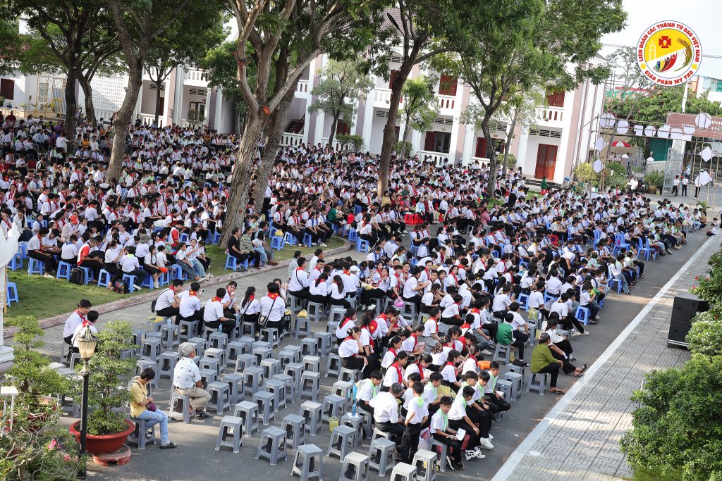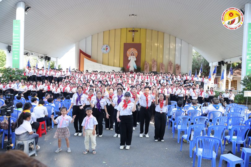 Chiều ngày 04/7/2025, Đại hội Thiếu Nhi Thánh Thể Giáo phận Mỹ Tho đã diễn ra trong bầu khí trang trọng tại Trung tâm Mục vụ Giáo phận, với sự hiện diện của hơn 2.000 thiếu nhi đến từ hơn 30 Giáo Xứ, cùng các Sa Mạc Sinh thuộc Sa Mạc Huấn Luyện Huynh Trưởng Horeb 8, Tabor 3 và đông đảo quý anh chị Huynh Trưởng, Trợ Tá, Trợ Úy.